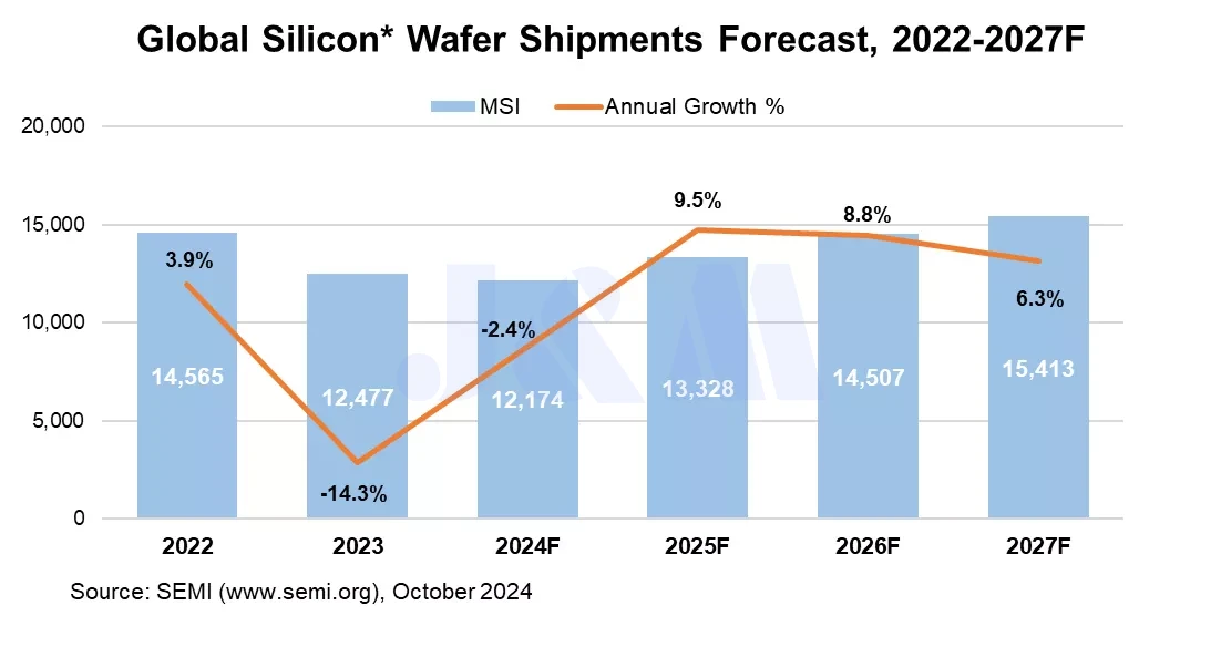 2024 Silicon Wafer Shipments Down 2.4%, Forecast to Rebound in 2025