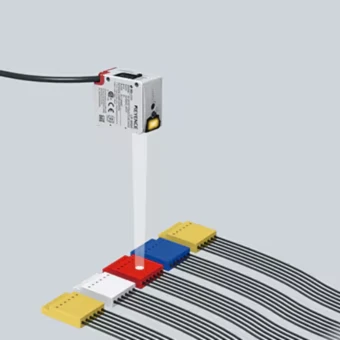 When using a red wavelength photoelectric sensor, certain color combinations, like red and white, can be challenging to distinguish. In contrast, a color sensor provides reliable detection, even for such complex combinations.